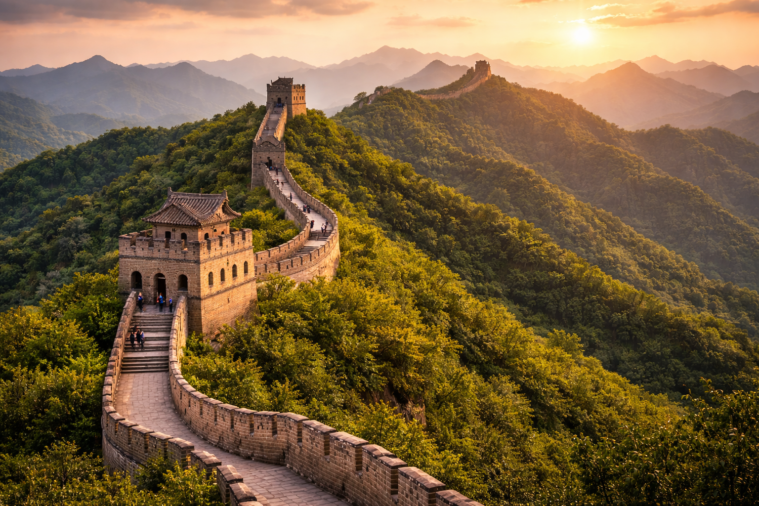 Вид с Великой китайской стены завораживает. Каждый сезон открывает новые пейзажи: от зелёных холмов летом до заснеженных вершин зимой. Эта картина, где природа гармонично переплетается с архитектурой, остаётся в памяти на всю жизнь.