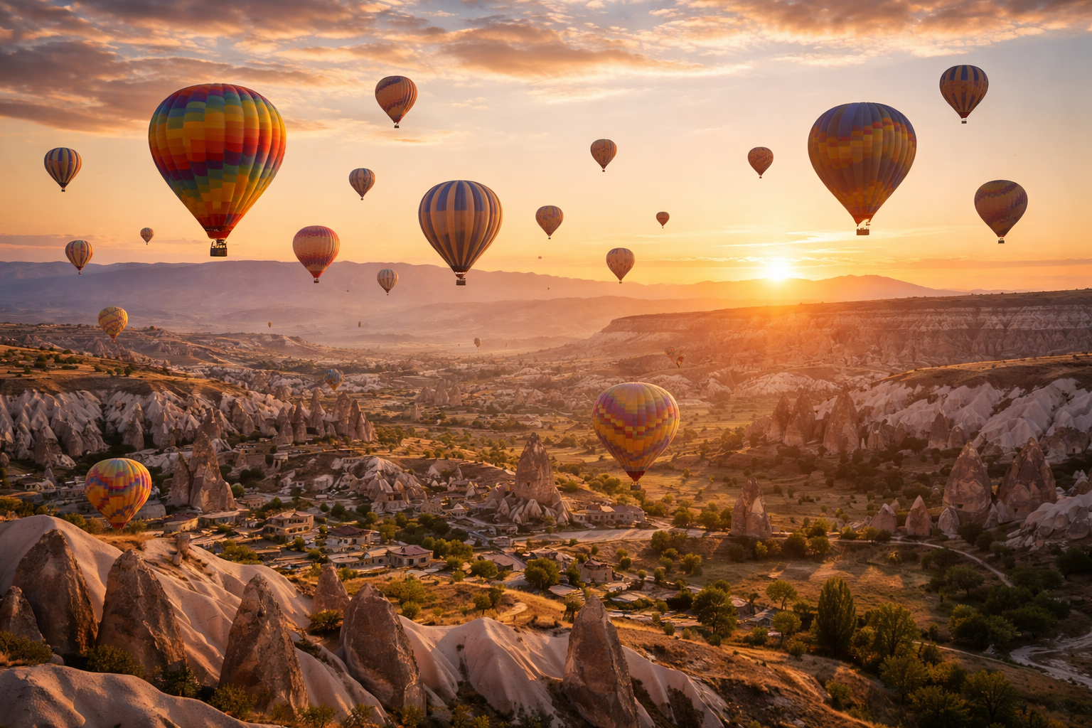Одной из главных причин посетить Каппадокию является знаменитый полет на воздушном шаре. Каждое утро, еще до рассвета, небо наполняется десятками цветных шаров, медленно поднимающихся над землей. С высоты открывается вид на странные скальные образования, глубокие долины и исторические деревни. Области, такие как Гёреме и Долина Любви, предлагают одни из самых красивых пейзажей, которые вы когда-либо видели. Этот опыт не только о видах — это момент тишины, спокойствия и изумления, который вы запомните на всю жизнь.