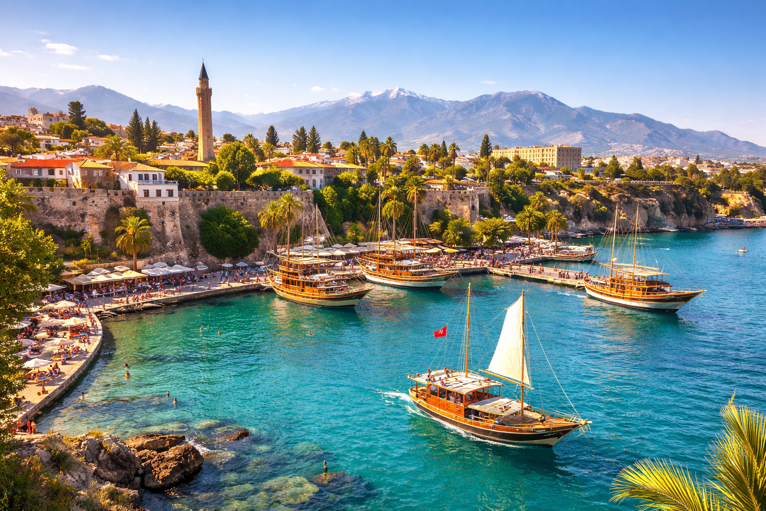 Расположение Антальи позволяет быстро перемещаться от пляжей к горам. Туристы могут посетить водопады Дюден и горы Тавр, что делает это место идеальным для активных путешественников.